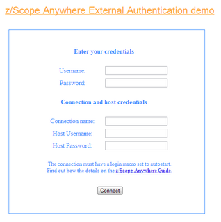 This C# asp.net demo is intended to help you learn how to authenticate securely against z/Scope Anywhere Server from an external application.