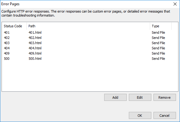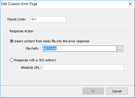 If you choose to add or edit a Custom Error Page, you will be presented with the following dialog:
